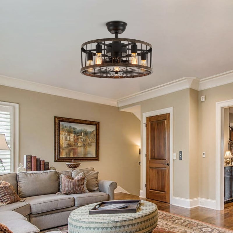 20 in. Low Profile Ceiling Fan Light Modern Farmhouse Wood Finish Caged Ceiling Fan with Light and Remote 20 in. Low Profile Ceiling Fan Light Modern Farmhouse Wood Finish Caged Ceiling Fan with Light and Remote